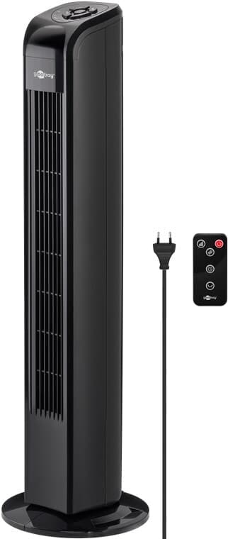 Denne kraftige tårnviften med fjernkontroll har en elektrisk motor på 50 W og gir jevnt fordelt ventilasjon i 3 ulike nivåer og ulike posisjoner takket være svingfunksjonen.
