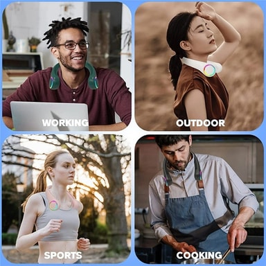 【Håndfri komfort】Designet for å henge komfortabelt rundt halsen, slik at du kan nyte kjølig luft samtidig som du har hendene fri til andre aktiviteter.