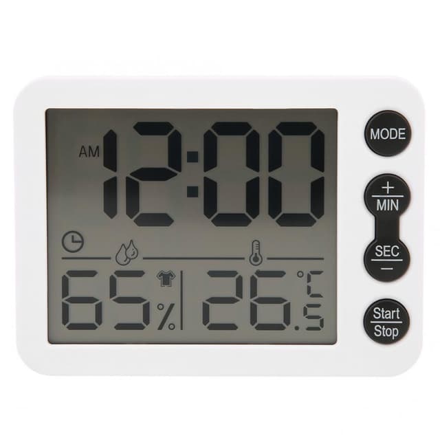 Multifunksjonelt innendørs termometer: Enheten måler både temperatur og fuktighet og kan fungere som en vekkerklokke. Den har også en timerfunksjon (nedtelling).
