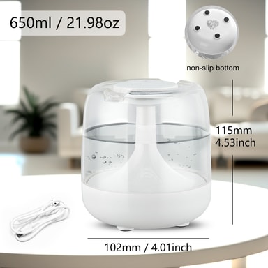 650ml Spray Aroma Diffuser er en stor mist USB luftfukter perfekt for soverom. Den har en 650ml tank, ultralyd kjølig damp, USB-strøm og 8-timers tidsstyring for hjemmeluftfukting.Les mer om produktet