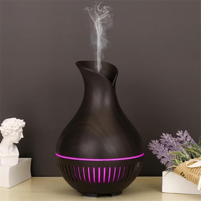 Luftfuktare i fin trädesign. I denna luftfuktaran kan du även droppa eteriska oljor för en behaglig lukt i hemmet. Luftfuktaren är lätt att placera tack vare sin kompakta storlek och tack vare den fina designen så passar den diskret in i hemmet. Passar i varje rum, både små och stora. Perfekt för barnkammare, kontor, spa, yogarum, studierum, lägenhet, sovrum, hotell, sjukhus, toalett, kontor eller vilken annan privat / offentlig miljö!