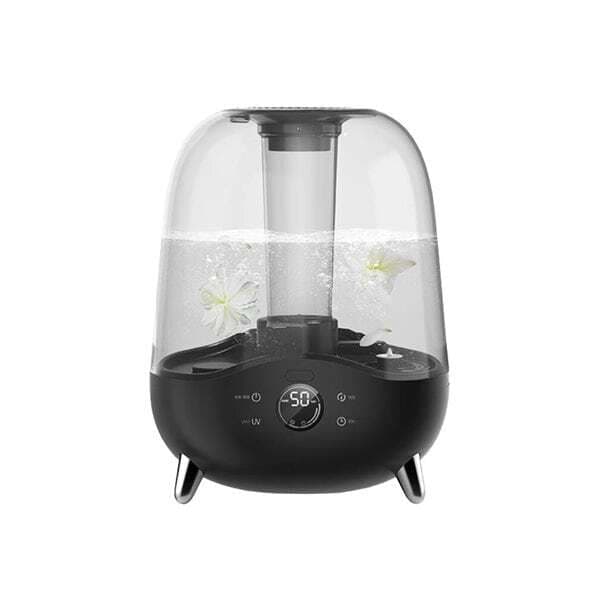 Deerma F327W har en stilig design med en svart base og en gjennomsiktig tank som passer inn i ethvert interiør. Den er også utstyrt med en karbonfilterteknologi som sørger for at vannet i tanken forblir rent for støv og andre partikler. Med et innebygd hygrometer kan du alltid se det aktuelle luftfuktighetsnivået på et tydelig display. I tillegg til luftfukting tilbyr enheten også aromaterapi, slik at du kan spre favorittduften din i rommet samtidig som du fukter luften.