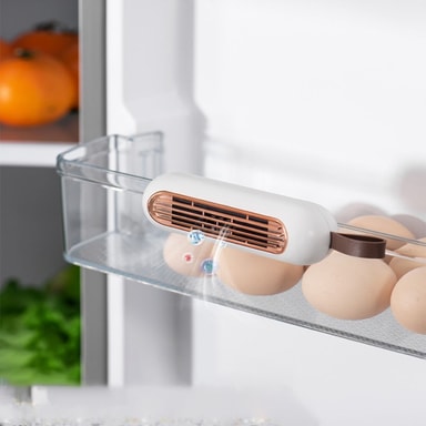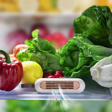 Eliminer lukt og forleng matens friskhet med denne ioniske luftrenseren for kjøleskap. Oppladbar og bærbar, perfekt for kjøleskap, skap, skoskap og mer. Holder maten friskere lenger. Ideell for luktfjerning og matkonservering.