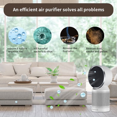 Vår luftrenser genererer 8 millioner negative ioner i luften, som effektivt kan rense luften og redusere lukt i hjemmet ditt uten å forstyrre læring, arbeid eller søvn.