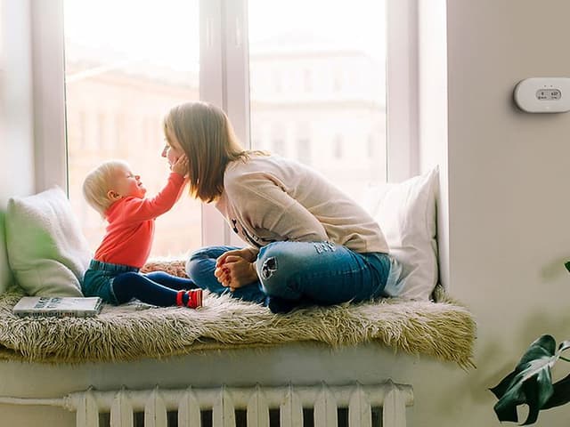 Vi tilbringer omtrent 90 % av tiden vår innendørs – View Plus forteller deg hva som finnes i luften og er en avansert luftkvalitetsmåler med syv sensorer som måler radon, partikler/svevestøv (PM 2.5), karbondioksid (CO2), VOC (luftbårne kjemikalier), luftfuktighet, temperatur og lufttrykk. Perfekt for kjøkken og stue hvor familien samles.
