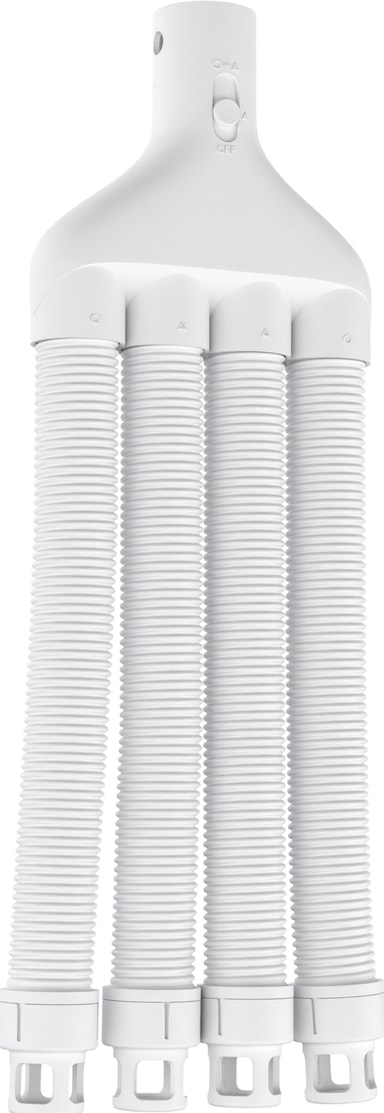 Hedgehog Squid slangeadapter H-4HO-WAD er designet for å kobles til eksisterende Hedgehog Wall-, Hanger- og Buddy-tørkerør. Den legger til fire bøyelige, stålforsterkede slanger som kan justeres opp til 90 cm, med tre luftstrøminnstillinger som gjør at du kan bruke de to midterste slangene, alle fire slangene eller slå av luftstrømmen for å optimalisere tørketiden og effektiviteten.
