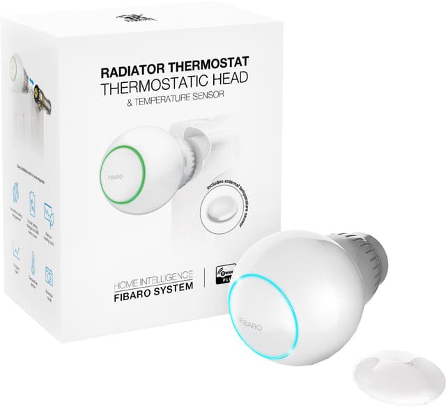 Fibaro radiatortermostat-startpakke inneholder alt du trenger for å installere en fjernkontrollert termostat til radiatorer. Den måler måler temperatur og justere automatisk varmenivå. Den kan festes uten verktøy på tre typer termostatventiler. Termostaten gir deg også mulighet for tidsplanleggingsfunksjon via en app som enkelt kontrollerer temperaturen gjennom uka. Den er kompatibel med Android, iOS, Windows Mobile, OS og Windows-systemer.