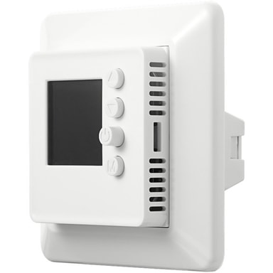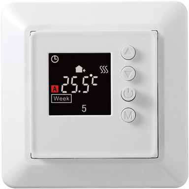 Hvit 16A «alt-i-ett»- termostat med spareprogram, frostsikring m.m. 2-polet hovedbryter.Les mer om produktet
