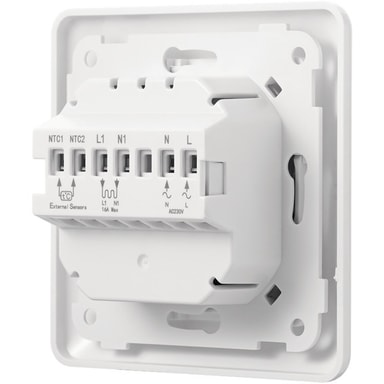 2-polet hovedbryter: Kan styre en last på inntil 3600W. Medfølgende gulvføler, innebygd romføler og effektregulator. Temperaturbegrensning og overspenningsvern, samt vern mot overtemperatur.