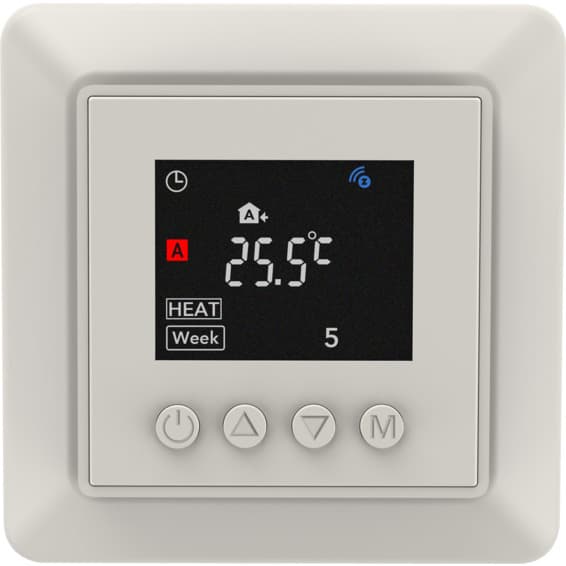Termostaten har flere smarte funksjoner og innstillingsmuligheter som gir økt komfort og lavest mulig strømforbruk – blant annet har den ukeprogram og fire ulike moduser: Borte, Automatisk, Manuell og Tørking.Kontrollerbar fra Z-Wave gateway og medfølgende kontroller.