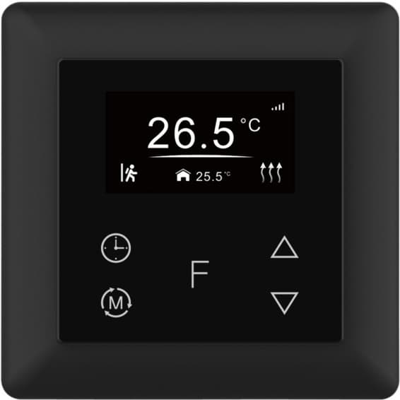 Termostaten har flere smarte funksjoner og innstillingsmuligheter som gir økt komfort og lavest mulig strømforbruk – blant annet har den ukeprogram og fire ulike moduser: Borte, Automatisk, Manuell og Tørking. Kontrollerbar fra Zigbee gateway og medfølgende kontroller.