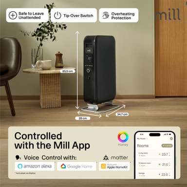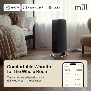 Hold hjemmet ditt varmt med 1500W Mill Gentle Air oljeovn OIL1500WIFI3. Den er perfekt egnet for rom på størrelse opptil 22 m², og varmes opp effektivt uten å tørke ut luften. Bruk Mill-appen for automatisk temperaturjustering basert på bruk.Les mer om produktet
