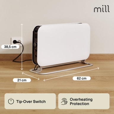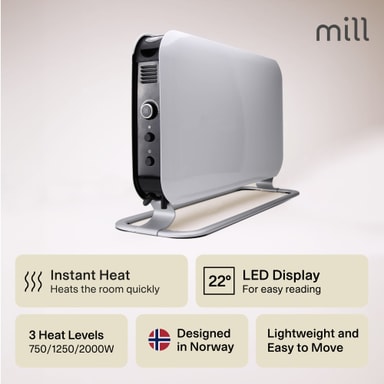 Denne gulvovnen fra Mill har et rent, elegant design med vifte, beskyttelse mot overoppheting og elektronisk termostat.Les mer om produktet