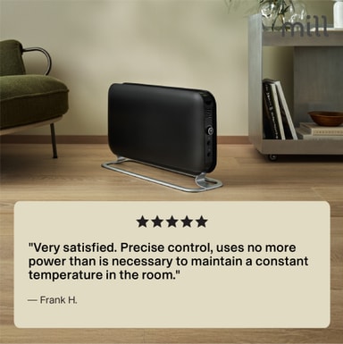 Mill Wi-Fi gulvvarmer CO1200WIFI3BLACK er ideell for oppvarming av rom så store som 22 m2. Den «svever» over gulvet og bruker Mill PID Wattage Tech og Predictive Heating-systemet for å holde den ideelle temperaturen for et varmt og koselig rom.Les mer om produktet