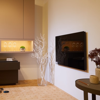 Den subtile forskjellen: I motsetning til konvensjonelle radiatorer varmes infrarøde varmeovner (primær stråling) opp veggene i stedet for luften i et rom. Vegger lagrer varmen lenger enn luftburet og returnerer varmen til rommet. (Sekundær stråling) Murverket forblir tørt. Fuktighet og mugg står ikke en sjanse.