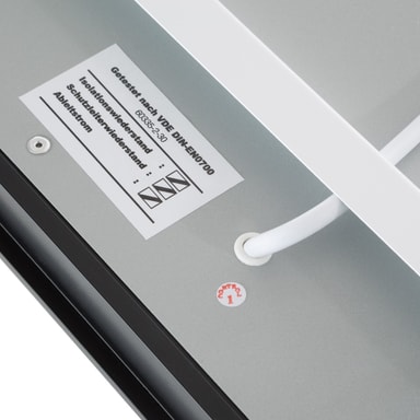 Den infrarøde speil-varmeren av høy kvalitet fra tectake har en bakside av forsinket stålplate, kapslingsklasse IP 20 stikkkontakt støpsel / IP 20 stikkkontakt støpsel / IP 44 fast tilkobling fast tilkobling. Den moderne infrafrøde speilvarmeren er ikke bare en utmerket varmekilde, men også et optisk høydepunkt. Den brukes fremforalt for oppvarming av moderne hverdags-, barne-, soverom og kontor. Med kapslingsklasse IP (sprutvannbeskyttet) kan de infrarøde panelene også benyttes på bad. De infrarøde panelene er flate som en moderne LCD-skjerm og kan med få håndgrep raskt moteres på. Fremsiden er tilvirket av termisk herdet glass, baksiden av forsinket stålplate. Som varmebærende medium bruker vi isolerte og kombinerte ledetråder, som er innvevd i varmebestandig og ikke brennbart tøy. Bestill allerede i dag den innovative infrarøde varmeren fra tectake.