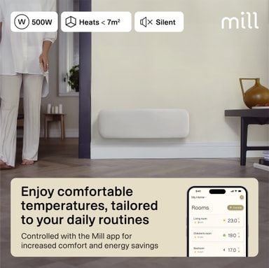Mill Invisible Wi-Fi Gen4 panelovn PA500LWIFI4 er kompakt og varmer opp rom på opptil 7 m². Denne ovnen har en elektronisk termostat og er sikker for bruk i våtrom. For bedre kontroll kan den kobles til Mill Wi-Fi-appen.Les mer om produktet