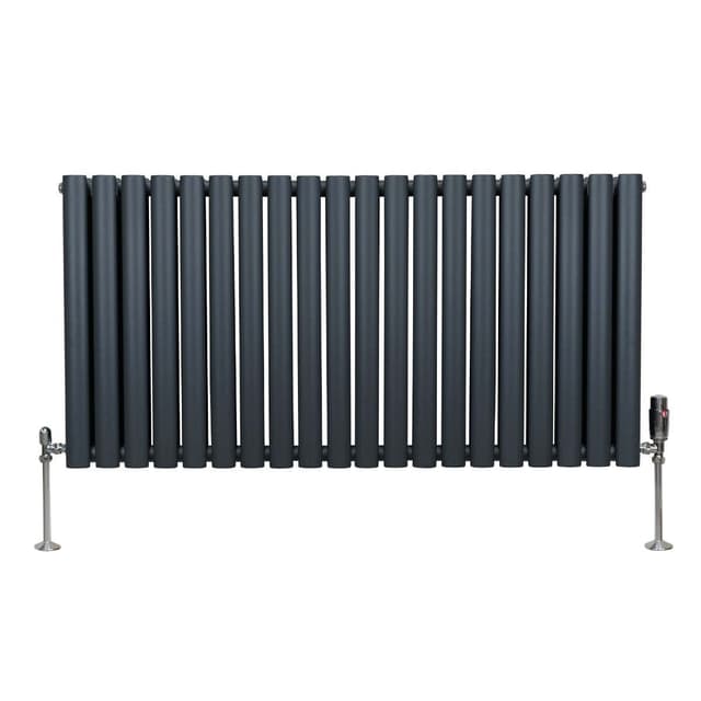 • Oval kolonneradiator - 600 mm x 1200 mm - Antrasittgrå og TRV kromventiler