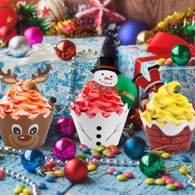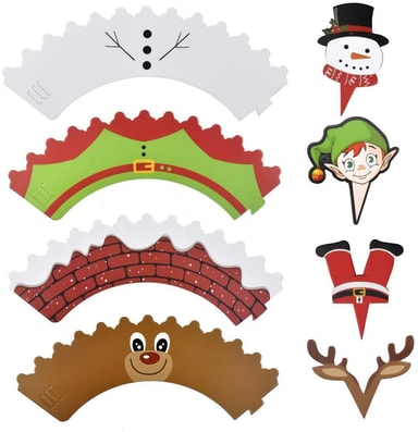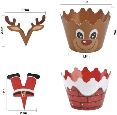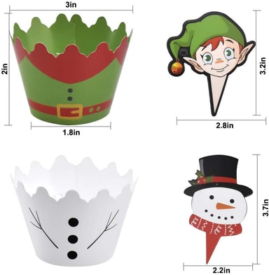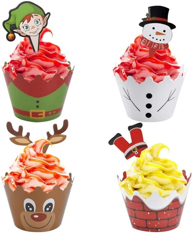 Et perfekt julesett for kakebakst i vinter: Dette settet inneholder 12 muffinsformer og 12 dekorative juleinspirerte figurer, som snømannen, jule rein og nissen selv, for å legge på kaker, paier og bakverk som du baker ved juletider!