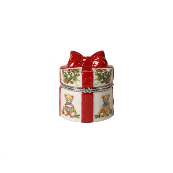 the christmas toy's collection combines nostalgic moments and modern design in a festive wonderland, with christmas markets, snowmen and santa claus eagerly waiting. An ideal addition to your festive home, for collecting, combining or as a gift. This gift box with a removable lid and many illustrious details is a charming way to store biscuits and sweets. Treat yourself and your loved ones to festive accessories.