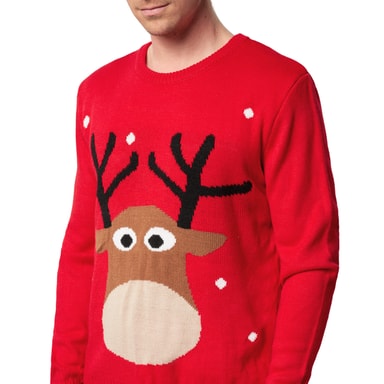 Den sjarmerende julegenseren med søtt reinsdyr for ham og henne skaper en koselig og festlig stemning. Fin dobbeltstrikk lover høy komfort og behagelig varme. Klesplagget har et klassisk snitt med rund hals og linning som danner en kontrast til det myke ribbestrikkmønsteret. Det store, strikkede reinsdyrmotivet på fronten er virkelig et blikkfang. De påsydde snøfnuggene gjør det sjarmerende helhetsbildet komplett, materiale: 100 % akryl.