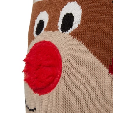 Julegenseren Reinsdyret Rudolf for ham og henne skaper en koselig og festlig stemning. Fin dobbeltstrikk lover høy komfort og behagelig varme. Typisk nordiske mønstre pryder ermene. Klesplagget har et klassisk snitt med rund hals og linning som danner en kontrast til det myke ribbestrikkmønsteret. Det store, strikkede reinsdyrmotivet på fronten er virkelig et blikkfang. Den store, lodne nesen og dusken på luen er sydd på. Påsydd er også de små pynteduskene, som fungerer som snøfnugg og avrunder det sjarmerende helhetsbildet, materiale: 100 % akryl.