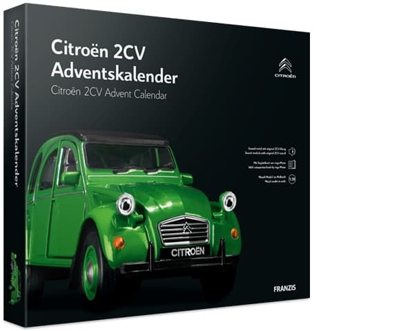 Adventskalender med byggesett av en Citroen 2CV i 1/38-skala. 24 luker som gjør ventetiden til julaften raskere enn en du klarer å si ordet nostalgi!