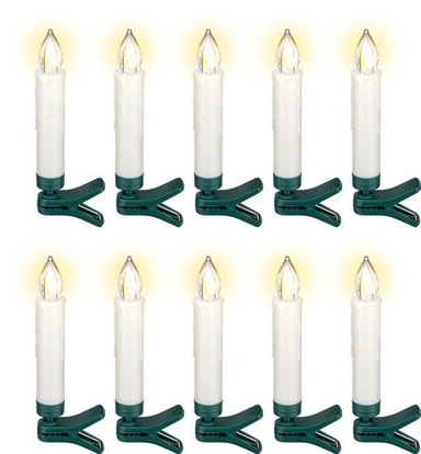 Uppsättning av 10 vita, trådlösa LED-ljus (vardera 1,5 x 10 cm) för festlig julbelysning