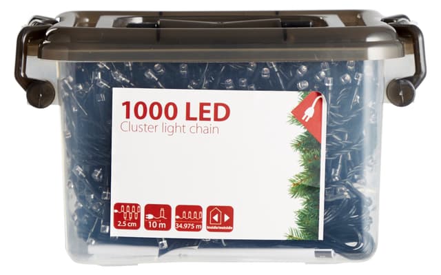 Det er en 10 meter kabel fra stikkontakten til den første LED-lampen. Så er det 2,5 cm mellom hver LED. Kjeden har en total lengde på 35 meter.