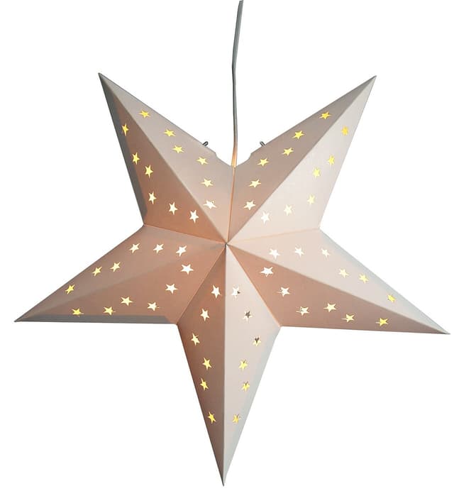 Papirstjerner blir stadig mer populært og denne elegante adventstjerna er laget i hvit papp. Diameteren er på 50 cm noe som gjør den velegnet til store vinduer. Leveres komplett med lampettkabel med bryter.