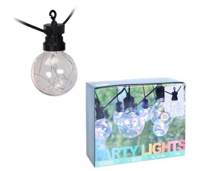 Stämningsfull ljusslinga på 7,5 meter med tio lampor som innehåller tio lysdioder vardera. Lysdioderna lyser i olika färger och lamporna har varsin hängare för smidig upphängning ovanför altanen, balkongen eller i partytältet för en härlig belysning under kvällar och festliga tillställningar.