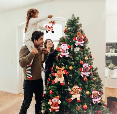 Søt julenisse laget av mykt plysjstoff av høy kvalitet og med fine detaljer. Heng den på juletreet, på døren eller i vinduet!