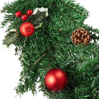 Få litt fin vinterstemning inn i huset med julekrans med kuler og kongler fra tectake. Hele designen er svært detaljert og naturtro, slik at det knapt er mulig å skille den fra originalen i naturen. Takket være den bøyelige ståltråden kan julepynten uten anstrengelser stilles i den ønskede posisjonen, skjæres til og bindes. Ikke bare i julen, men også ved festlige anledninger som brylluper eller bursdager, er den praktfulle kransen et ekte blikkfang.