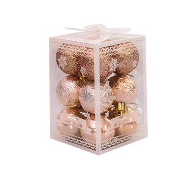 Knusesikre julekuler (12 stk) laget av ABS-plast, perfekt for juletrær og juledekorasjoner. Trygt for hjem med barn og kjæledyr. Ideell for kranser, girlander og festlig dekor.Les mer om produktet