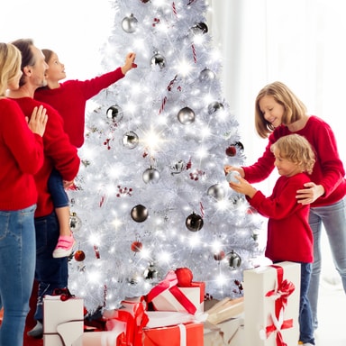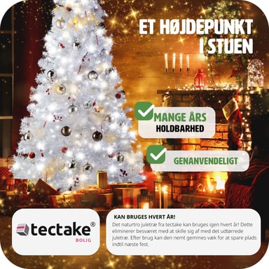 Med det kunstige juletreet fra tectake i hvitt kan du lage ditt eget julevinterland hjemme. Hundrevis av nåler gir det tette treet et veldig autentisk utseende. De bøyelige grenene gir god plass til dekorasjoner som lys eller fargerike julekuler, som tar seg spesielt godt ut på det hvite juletreet. Takket være det sammenleggbare og gulvvennlige metallstativet, kan monteringen fullføres med bare noen få trinn. I motsetning til et ekte tre mister ikke dette langtidsholdbare juletreet noen nåler og kan oppbevares for å spare plass etter festen – til neste bruk.