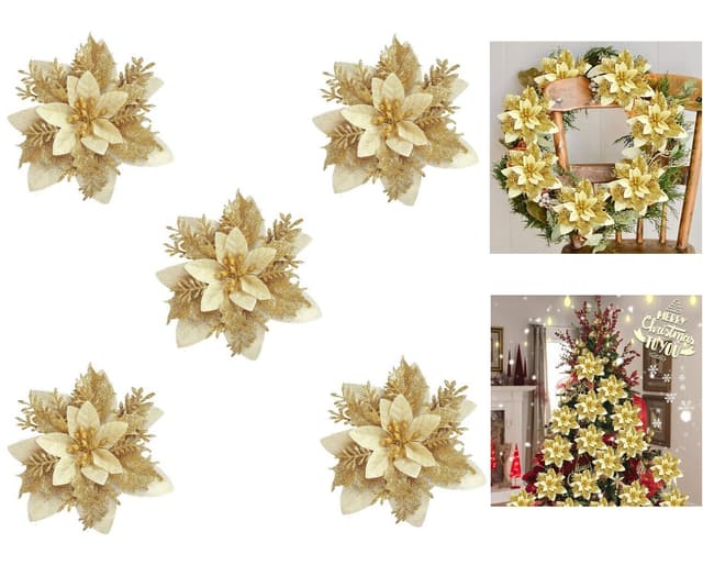 Hållbara och återanvändbara: Dessa julblommor är gjorda av högkvalitativt silvrigt glittrande plastmaterial. De är tåliga och kan användas om och om igen.