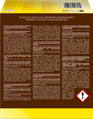 Et perfekt rengjøringssett for rene kaffemaskiner. Melitta® Espresso Perfekt Clean CareSet rengjøringssett er egnet for automatiske kaffemaskiner og gir perfekt pleie for maskinen din. Produktene er spesielt tilpasset Melitta Caffeo-maskiner og gjør vedlikeholdet enkelt og effektivt.