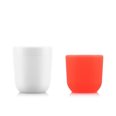 Kruset er laget av førsteklasses hvitt porselen og kledd i et svart silikonbelte som er varmebestandig og komfortabelt å holde i, samtidig som det eliminerer behovet for drikkebrikker. Gjør settet ditt komplett ditt med annet servise og drikketøy fra den samme elegante serien.