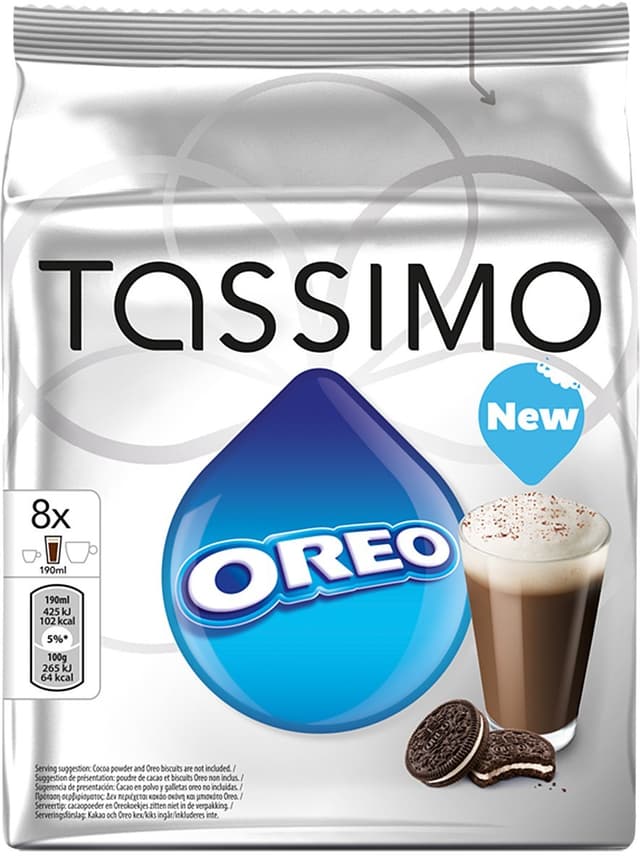 Lag smakfull kakao med Oreo-smak på din Tassimo kapselmaskin. Pakken inneholder 8 kapsler og barna vil elske denne smakskombinasjonen.