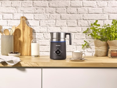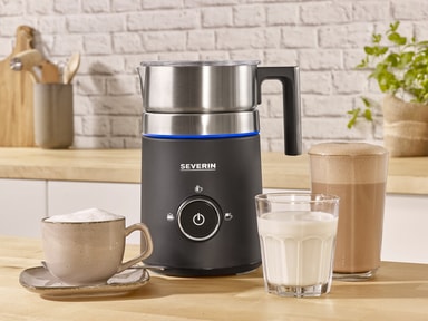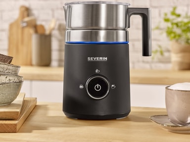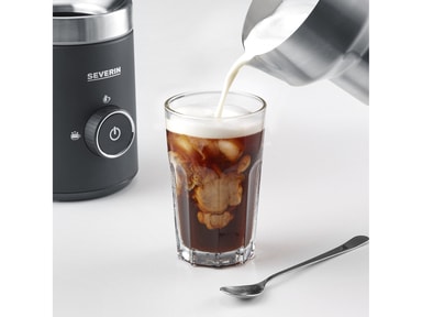 Melkeskummer Spuma 500 med innovativ funksjon som lager varm kakao av hele sjokoladebiter. Velegnet til kald og varm skumming samt oppvarming av melk. 500 ml melkebeholder i rustfritt stål. 500 watt. Flott design i børstet stål og matt svart, med stilren 360-graders LED-lysring som viser varm eller kald bruk med rød eller blå farge. Akustisk slutt-signal. Nøyaktig hellefunksjon med en perfekt utformet barista-tut, som også gir muligheter for lattekunst. Den store melkebeholderen i rustfritt stål er perfekt til skumming av 120–260 ml melk eller oppvarming av 120–500 ml melk.Utskiftbare innsatser for oppvarming, skumming og smelting av sjokolade. Lokket kan åpnes, slik at du enkelt kan tilsette andre ingredienser, for eksempel sjokolade.Melkeskummeren er enkel å rengjøre, og melkebeholderen kan vaskes i oppvaskmaskin. Børstet stål / matt svart.Modell SM 3585.