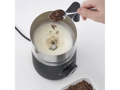 Melkeskummer Spuma 500 med innovativ funksjon som lager varm kakao av hele sjokoladebiter. Velegnet til kald og varm skumming samt oppvarming av melk. 500 ml melkebeholder i rustfritt stål. 500 watt.Les mer om produktet