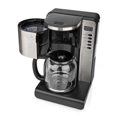 Denne stilige kaffetrakteren med finish i rustfritt stål har en glasskolbe med en kapasitet på 1,5 liter, noe som gjør den egnet til å lage opptil 12 kopper kaffe.Kaffemaskinen er svært praktisk å bruke, og har en nylonfilterholder til flergangsbruk