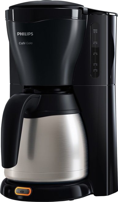Tilbered herlig kaffe til alle dine gjester med Philips Café Gaia kaffemaskin HD754420. Du kan tilberede opptil 1,2 liter med herlig drikke i termosmuggen som holder innholdet varmt. Nyt praktiske funksjoner som dryppstopp og automatisk avskruing.Les mer om produktet