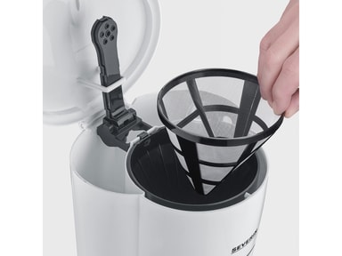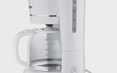 Filterkaffemaskin med glasskanne med en kapasitet på 1,25 liter, som tilsvarer 10 kopper kaffe. En dryppstopp tillater at kannen fjernes, også under bryggeprosessenLes mer om produktet