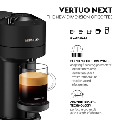 • NESPRESSOVertuo Next kaffemaskin fra DeLonghi, Matt Sort