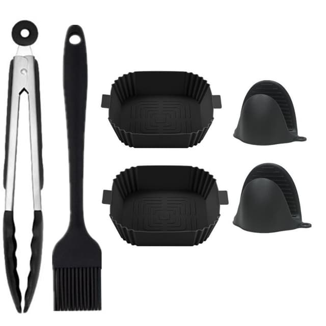 Kom med praktiska tillbehör: Förutom matbehållaren innehåller paketet även en oljeborste, en matklämma och ett par handvantar, som hjälper dig att greppa heta föremål säkert utan att bränna hand eller fingrar.