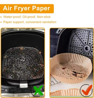 Beskytter airfryeren din: Disse runde, fetttette papirforingene har en hevet kant som også beskytter siden av airfryeren. Foringen holder airfryeren ren og frisk, noe som reduserer behovet for rengjøring etter bruk.