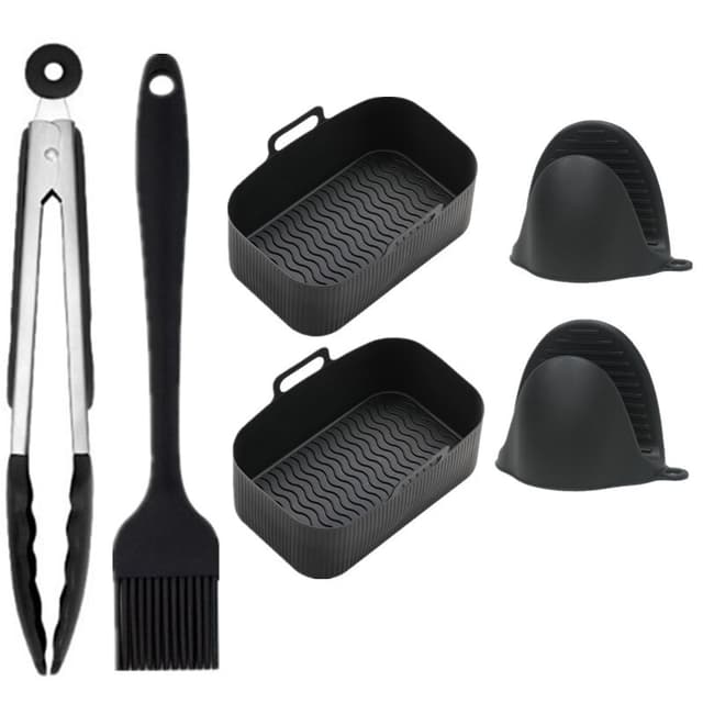 Kom med praktisk tilbehør: Bortsett fra matbeholderen, inneholder pakken også en oljebørste, en matklemme og ett par håndvotter, som hjelper deg å gripe varme gjenstander trygt uten å brenne hånden eller fingrene.