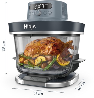 Ninja Crispi Pro airfryer AS101EUCYer en 7-i-1 airfryer i glass med beholdere på 5,7 liter og 2,3 liter, slik at du kan tilberede alt fra familiemåltider til små porsjoner. Den har funksjoner som frityrsteking, baking, steking og re-crisp, og det PFAS-frie, varmebestandige glasset gjør at du kan tilberede, servere, oppbevare og varme opp mat i én og samme beholder, noe som gjør den praktisk og enkel å rengjøre.