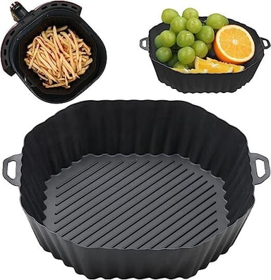Skyddar din Airfryer: Genom att lägga maten i en behållare undviker du klibbiga och brända rester, olja i fritösen. Praktisk design med hög kant underlättar också att ta mat i och ur fritösen. Även perfekt att använda i mikrovågsugnen.